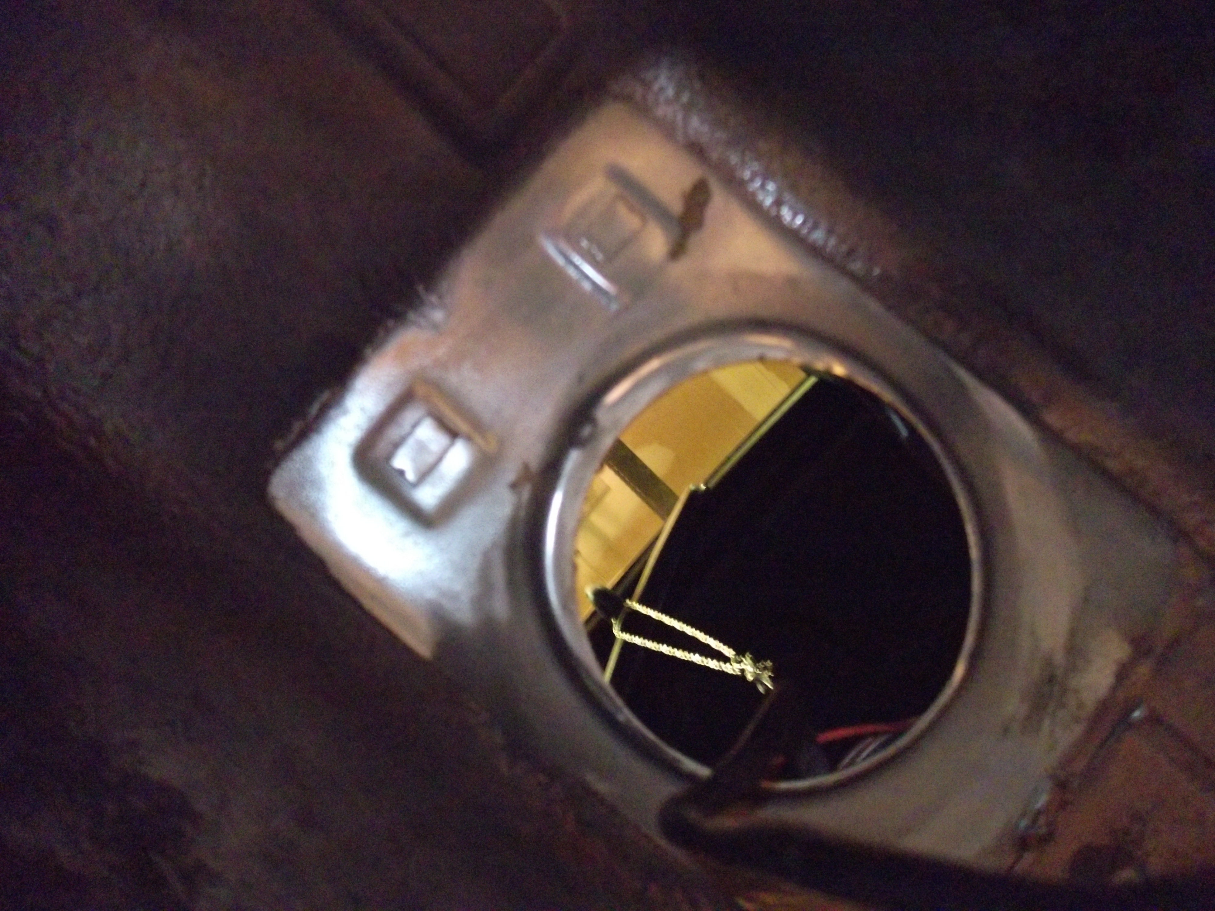 through the hole where the