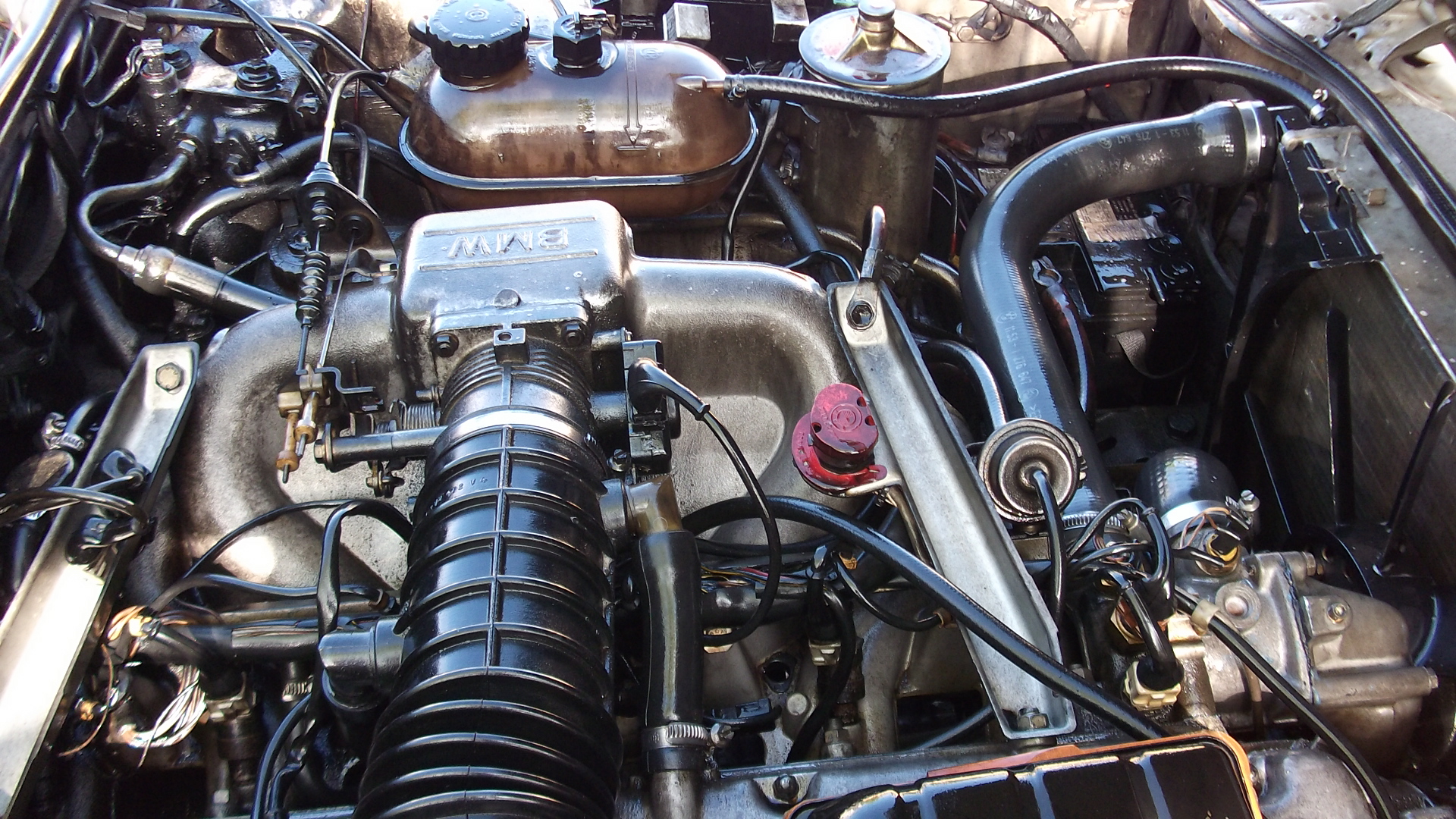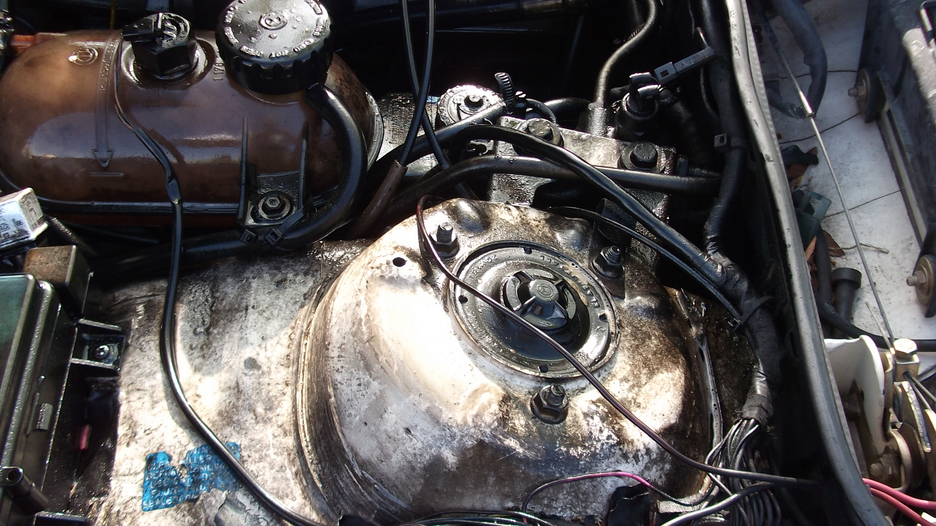 Here's a view of the engine bay right before I cleaned this up. Due to the