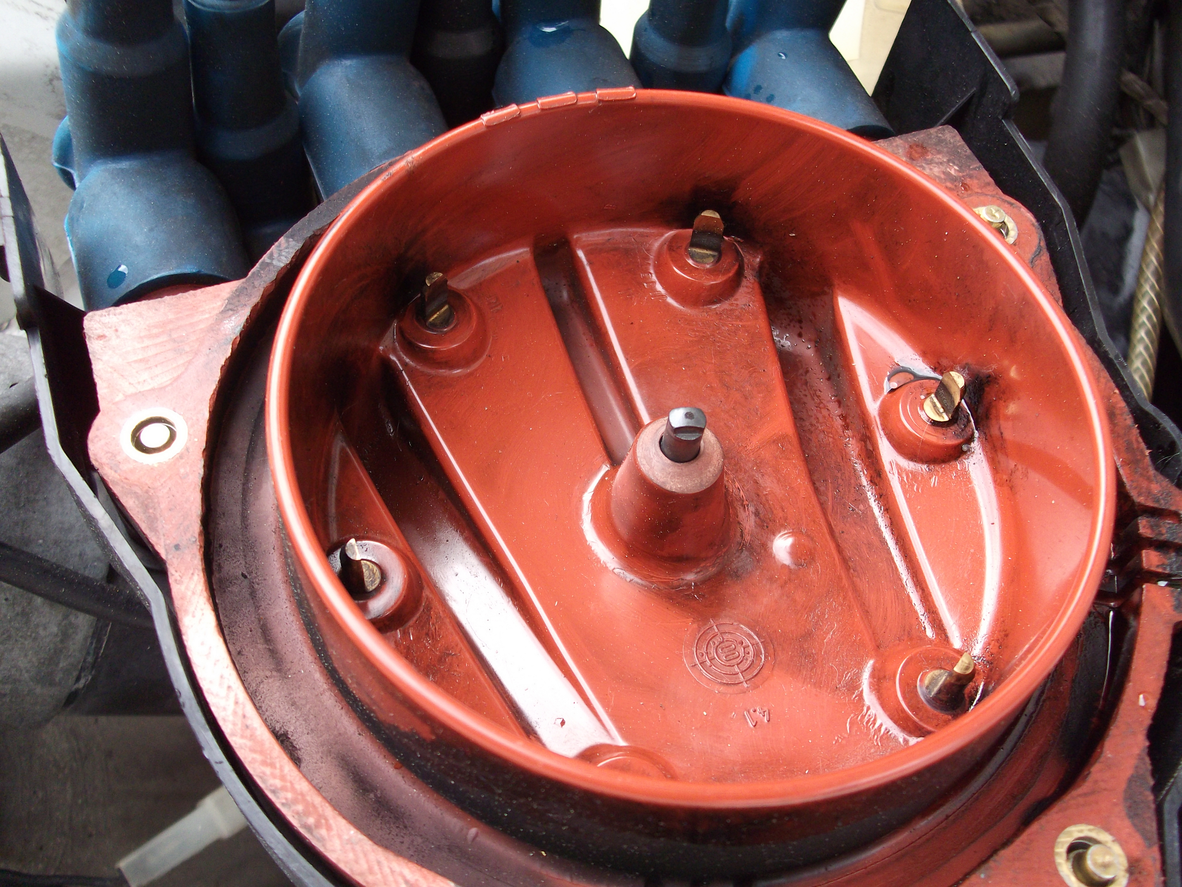 Here is the distributor cap and the inside was just covered in oil. I did clean it