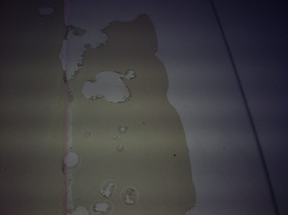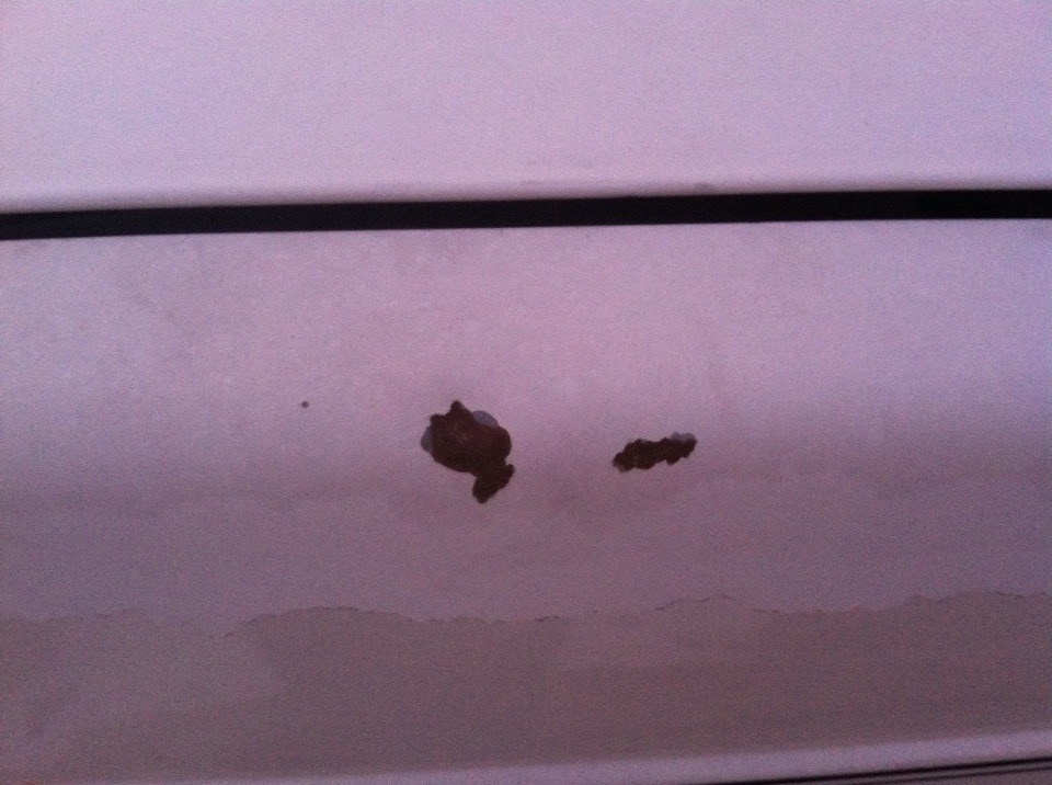 15 October 2013: When I was at Rick's the other day, I got to take a better look at Heidi and was glad that I repossessed her! Holy cow! Rick took the "spoiler" off while I was there and I almost fainted! I was sweating like crazy when I installed a spoiler on my car to make sure I drilled the holes right. At the same time I made sure I sealed everything so I would not get water in the trunk. Below is a picture of what it looks like when you let someone have a car without getting the money first!
